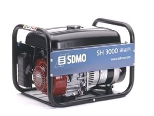 The SDMO SH3000 generator has a reliable Honda GX200 OHV petrol engine producing 3Kw Max.power. This heavy duty generator will run continuously for just over 9hrs from a full 12 litre tank and starts easliy with a manual recoil starter. It has 1 x 115v and 1 x 230v 16A sockets and weighing just 41kg makes it a robust and portable generator